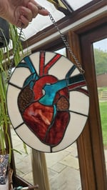 Anatomically correct human heating a mix of transparent and opaque glass, when light shines onto this a heart shows on your wall