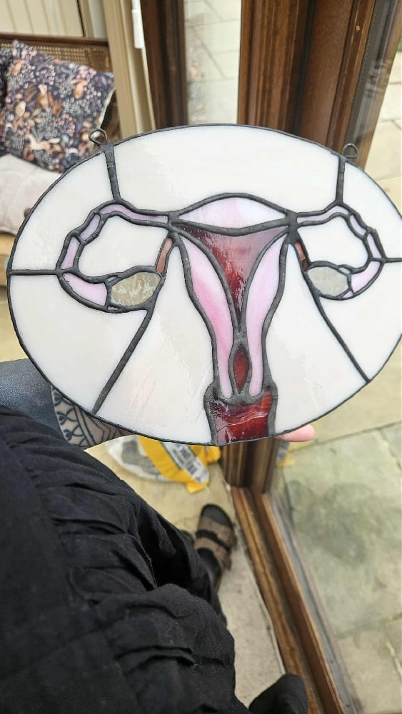 Anatomically correct uterus in a mix of different glass, comes with black chain which is optional
