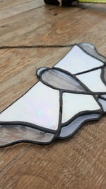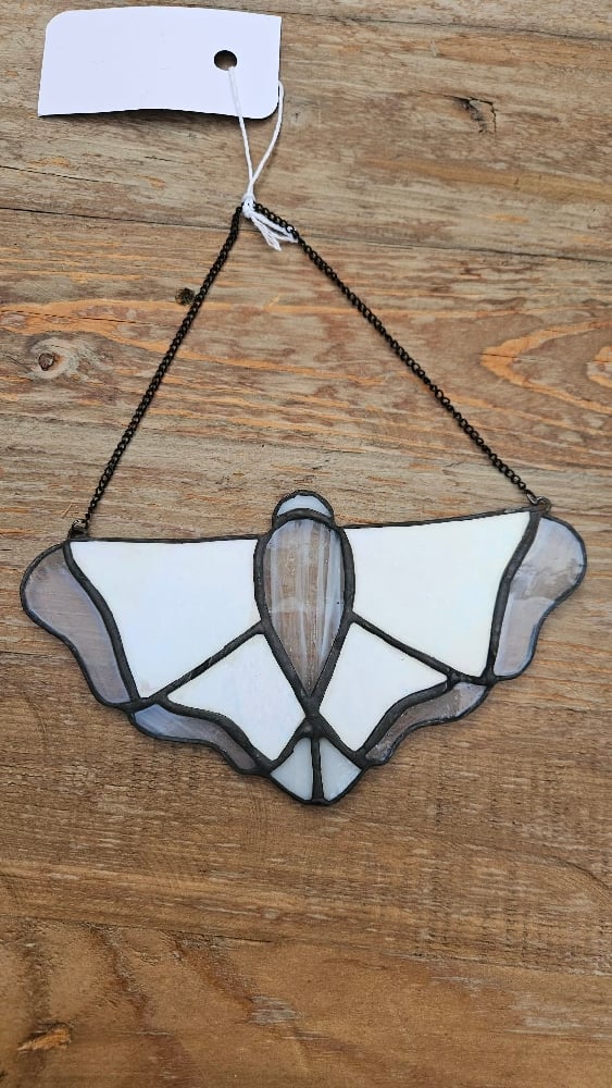 Iridescent moth with clear edges and black patina solder