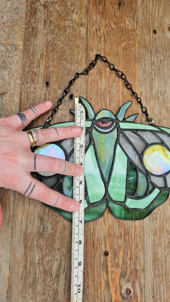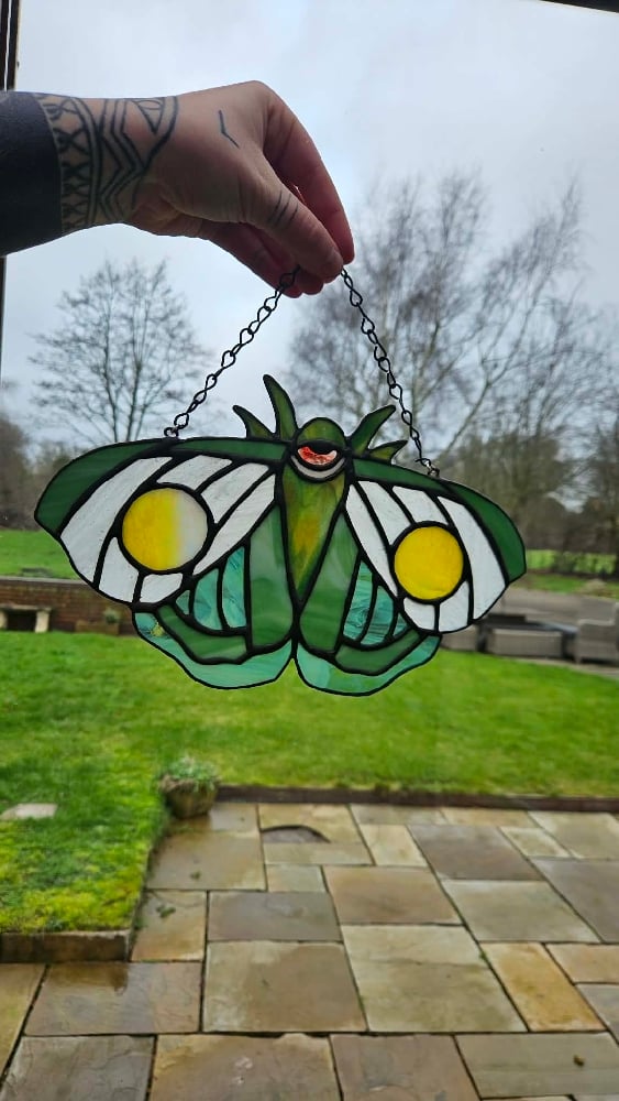 Green sureal moth made with a lovely complimentary green colou pallet all hand selected